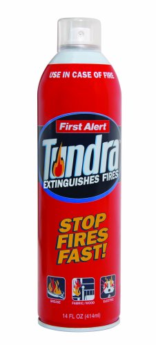 PRODUCT DESCRIPTIONS:First Alert AF400UK Tundra fire extinguishing spray is a non toxic fire fighting agent which can be used as a compact alternative to a fire extinguisher. Because of its compact size, it is ideal for use in the kitchen and around the home. It will easily fit inside a drawer so does not cause clutter, or require fixing to the wall. The spray could not be easier to use, with its aerosol style nozzle--simply point and spray.